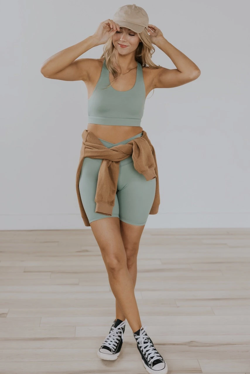 We may call you crazy for sleeping in a bra, but it’s completely understandable if you don’t want to take off this sports bra. With a luxe soft texture, thick sweat-wicking fabric, and wide straps, this bra is bound to be your number one! So, skip the shoulder pain and irritation from straps slipping off the shoulders or a hook or underwire stabbing you, and grab this cute sports bra with fun strap design on the back, a perfect hue of blue, and don’t forget the matching bottoms!