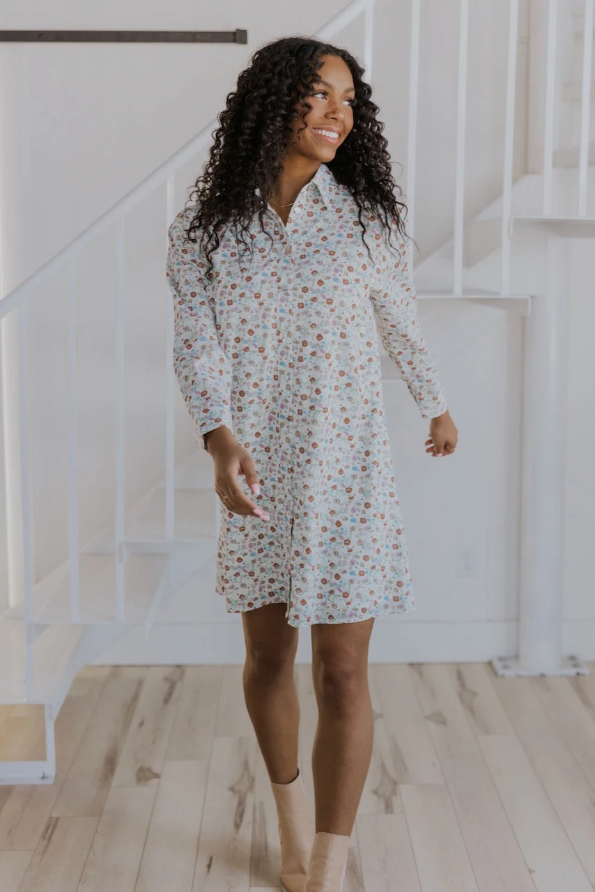 Things that make me jump with glee: shirt dresses, delicate floral patterns, + places to wear them. Pair this dress with tights + boots for the rest of winter, then welcome spring by pairing her with vests + heels. Either way, this dress will have you frolicking through fields of flowers without having to leave your house!