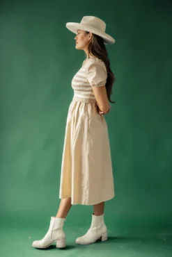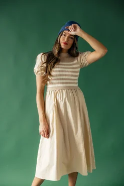 The perfect season transition dress is here! It features a soft + stretchy ribbed knit bodice, a stretchy waistband, and puff sleeves. You can easily pair this with boots and a cardigan plus it will be so cute this spring and summer with your favorite sandals!