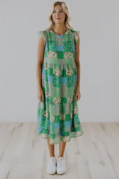 The Andarna Patchwork Midi is sure to turn heads! The flutter sleeves add a touch of femininity and movement to the overall design. Crafted with a combination of various patterns, this dress showcases an eye-catching patchwork style. Perfect for both casual and dressy occasions, this midi dress is sure to make a stylish statement!