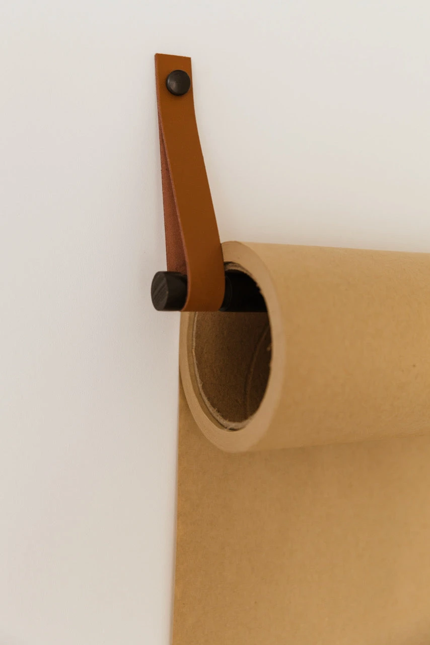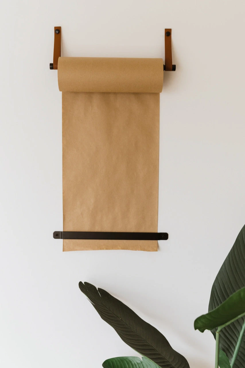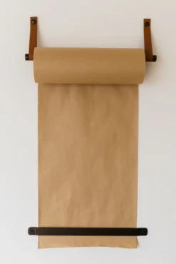 - Each roller includes your first roll of quality brown kraft paper, leather straps for mounting, cut bar, and hardware for installation.