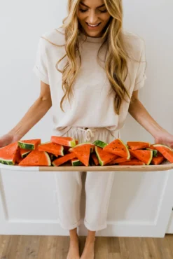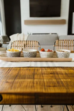 Gather ’round. This serving tray is the grand all for your dining table. Make an impression on your guests with this two-toned wooden serving tray. Use for your next dinner party, or for year-round decor.