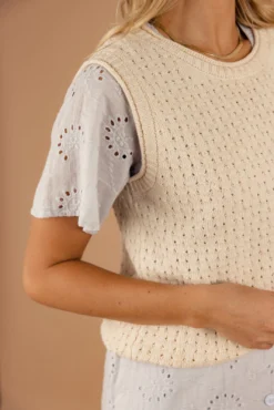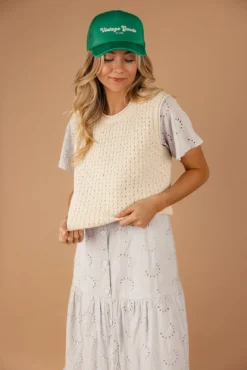 This adorable vest combines warmth with style, featuring rolled hemlines and an open knit design that adds a touch of texture to any outfit. Whether you’re layering up for a chilly day or adding a chic accent to your spring ensemble, this vest is the perfect choice.