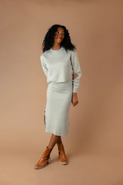 A skirt set really adds some style to your wardrobe and this sweater is the perfect addition. Featuring balloon sleeves, a crew neckline, + the coziest material, you won’t ever want to take it off!