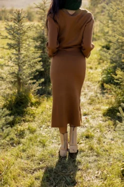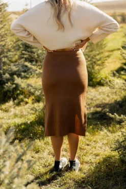 The Brightly Shining Midi Skirt features cozy knit material, side slits, and a comfy waistband. We love it paired with the matching sweater or another neutral sweater to add some contrast.