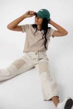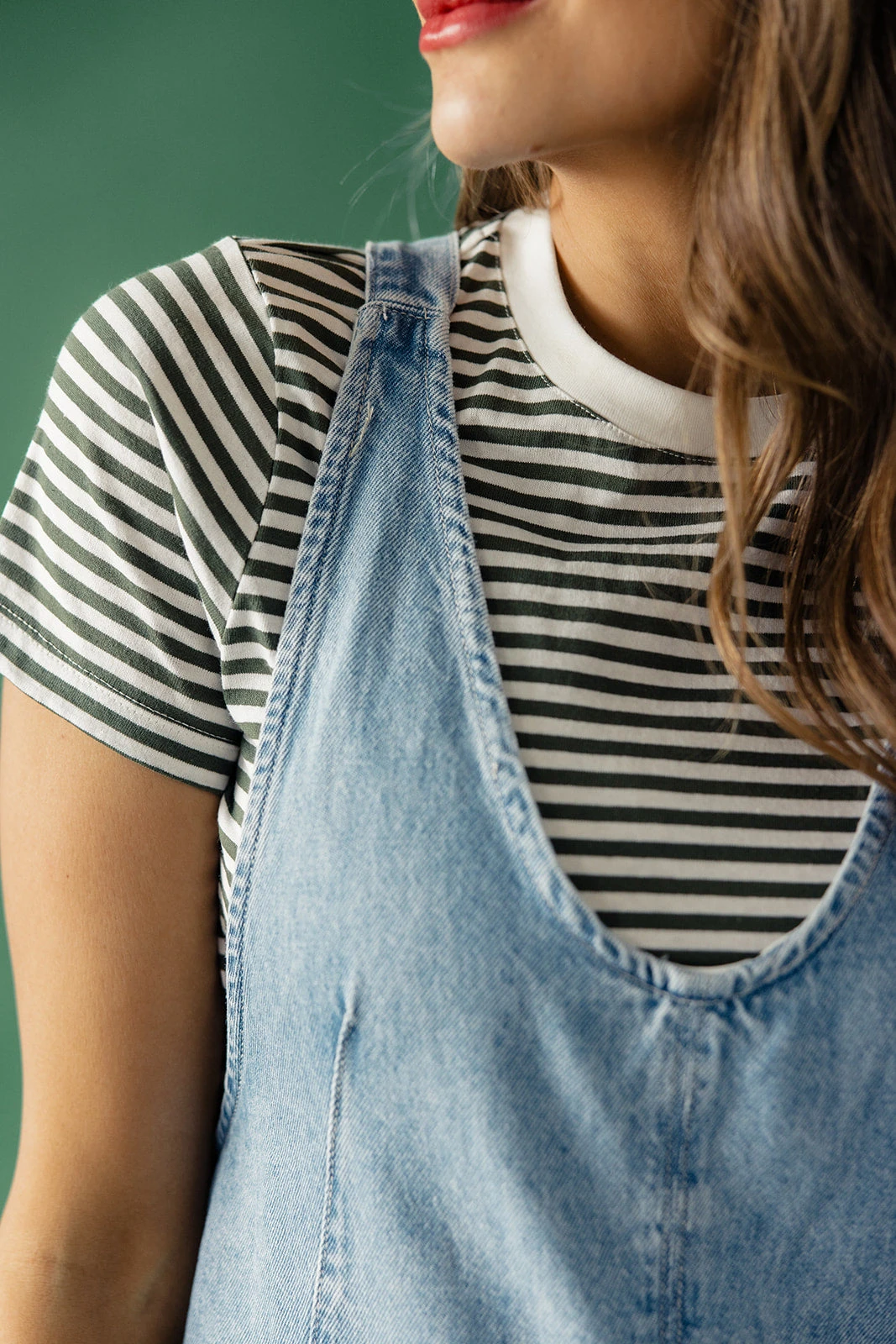 olive // paired with the free people high roller jumpsuit, big time denim shorts, free people happy hour plaid shirt, + smiley trucker hat in black