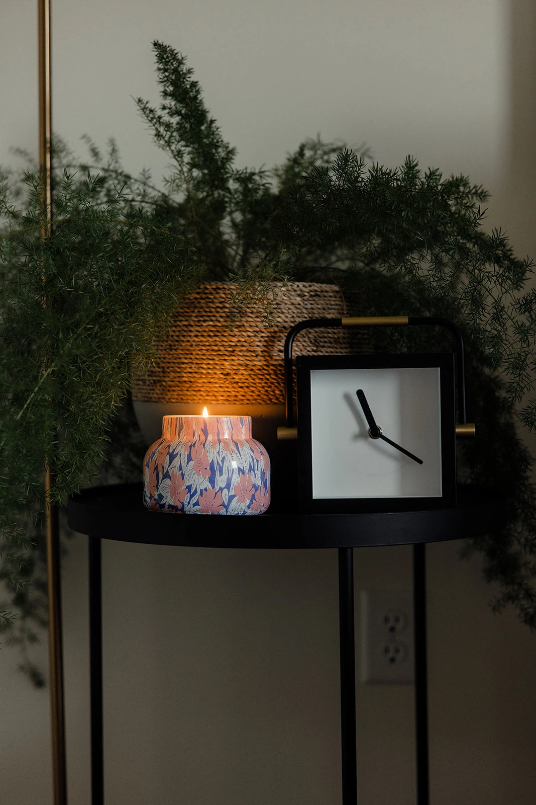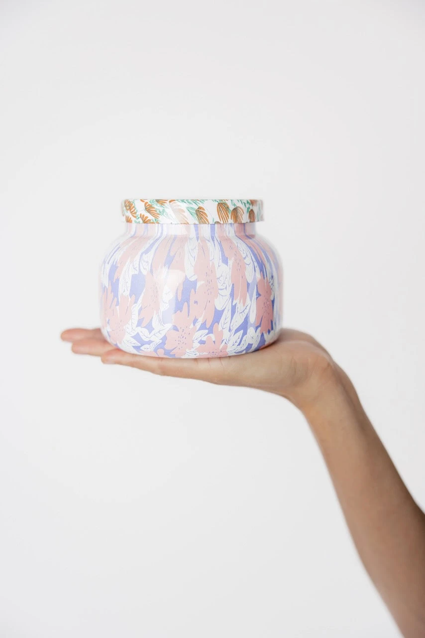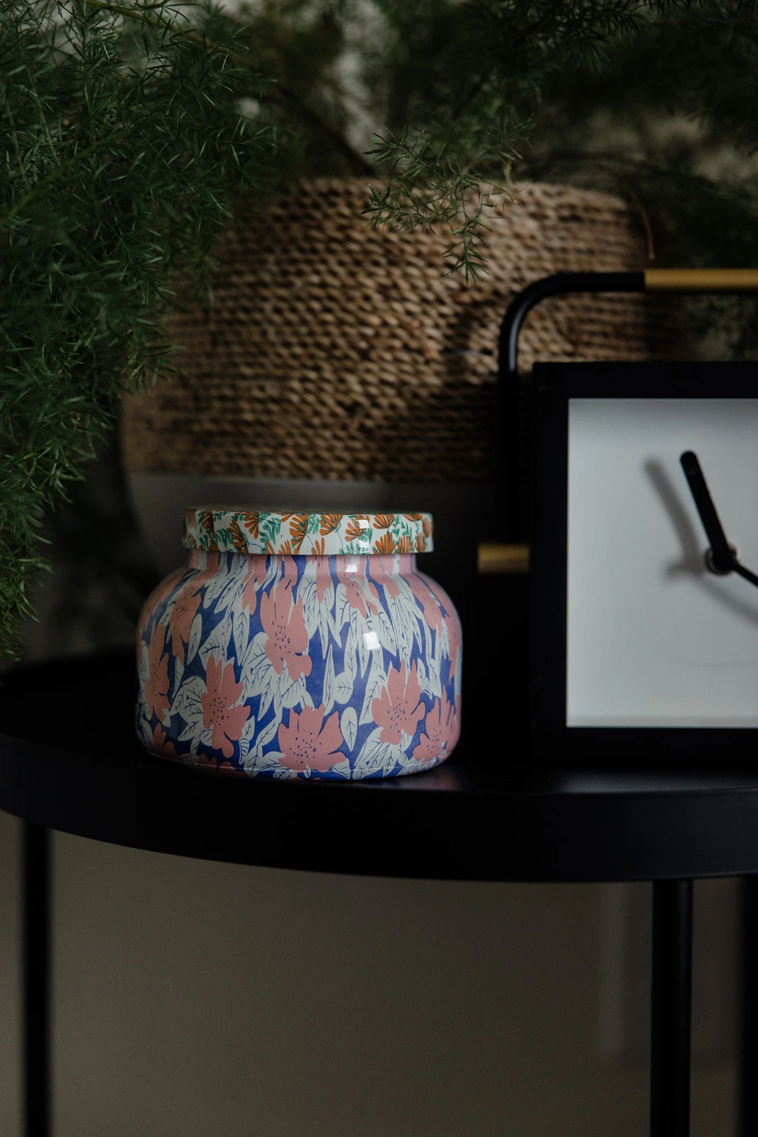 Spring fling! Floral, flirty and a burst of bold patterns. This Volcano Pattern Play Signature Jar is ready to make a BOLD statement with playful patterns and an unforgettable fragrance! Fill your space with notes of tropical fruits and sugared citrus.