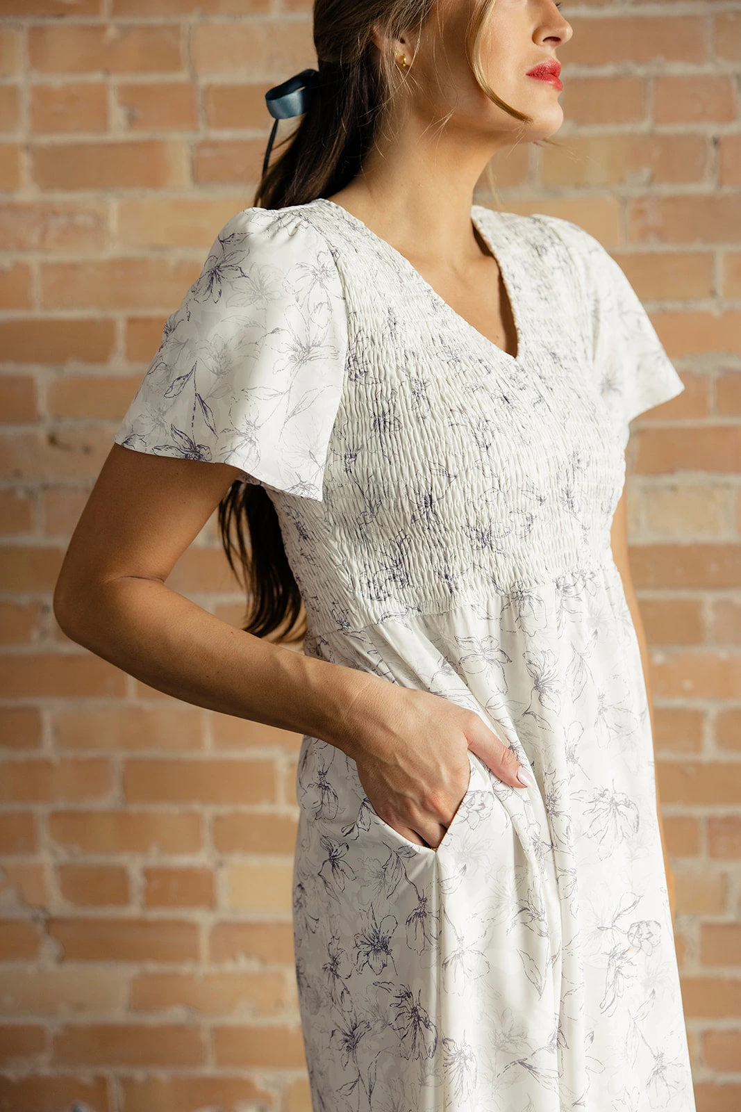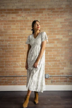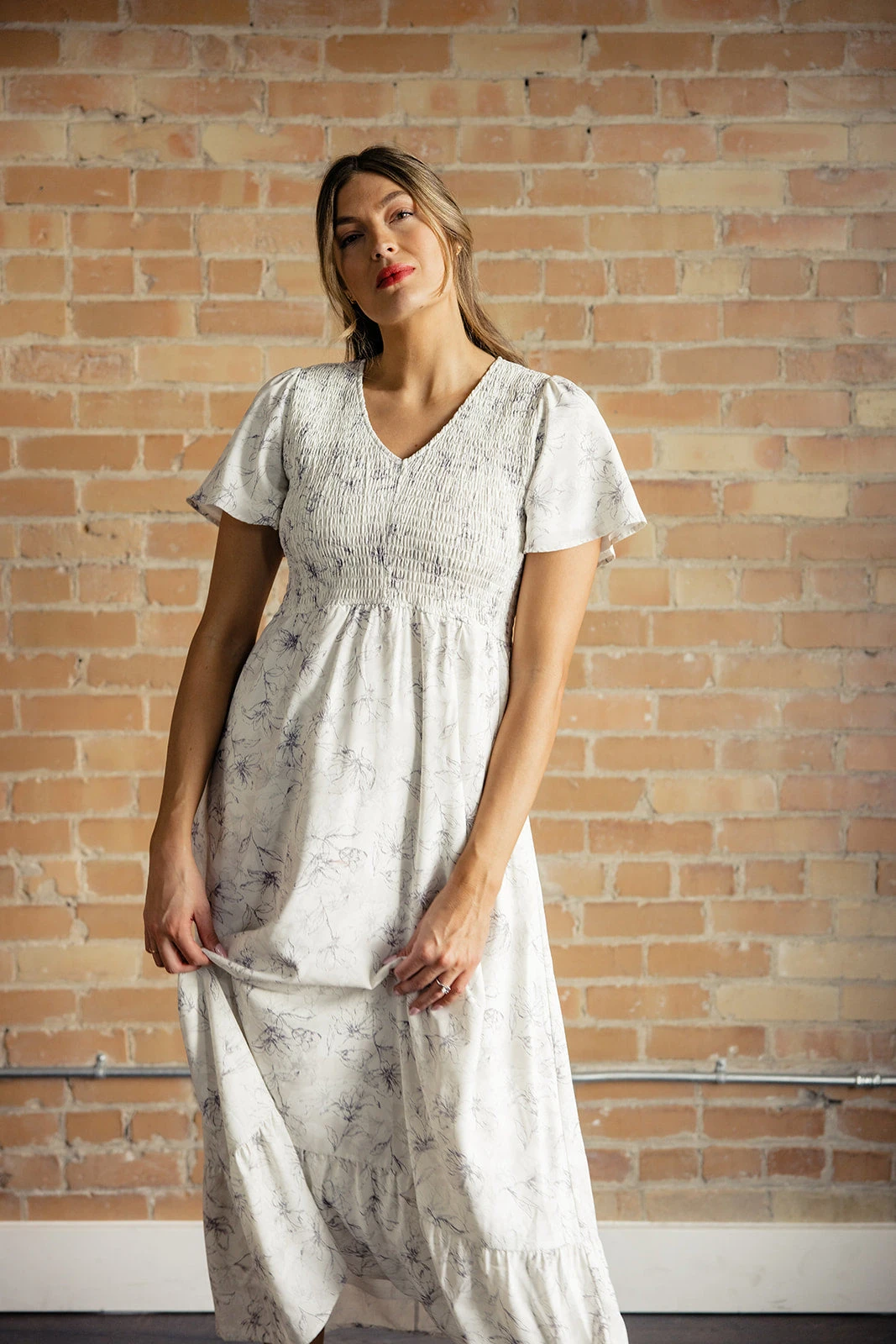 This dress will make you swoon! Featuring a v-neckline, smocked bodice, and flutter sleeves, we truly are captivated by this one. The Captivated By You Smocked Maxi is perfect for a special night out or Sunday service!