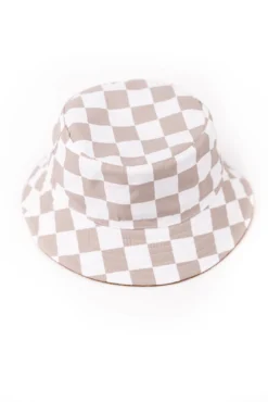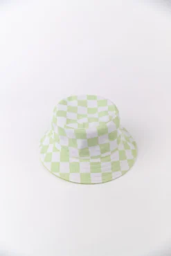Checkered to solid. Solid to checkered. A reversible bucket hat for your little one is a summer MUST. Featured in brown + light green, this bucket hat is going to be perfect for summer trips to the zoo, park, + aquarium. Because this summer is all about fun in the sun while being protected from those hurtful rays. We might as well have some options with a reversible bucket hat 🙂