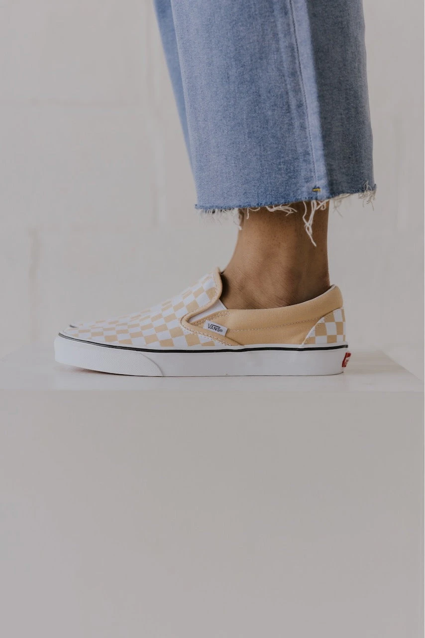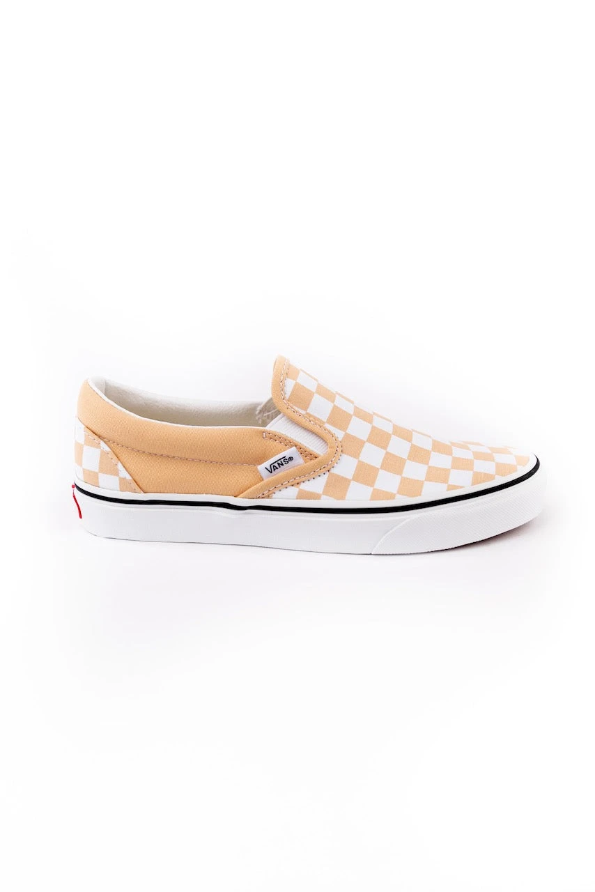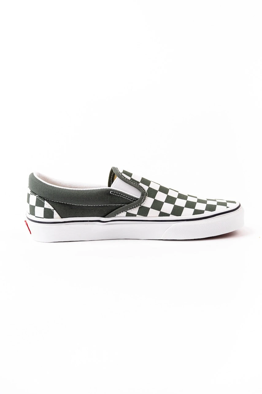 Featuring the iconic Vans checkerboard print, the Checkerboard Classic Slip-On is an everyday essential. This shoe also features canvas uppers, supportive padded collars, elastic side accents, and rubber outsoles. Take your everyday look up a notch with these simple yet stylish sneakers!