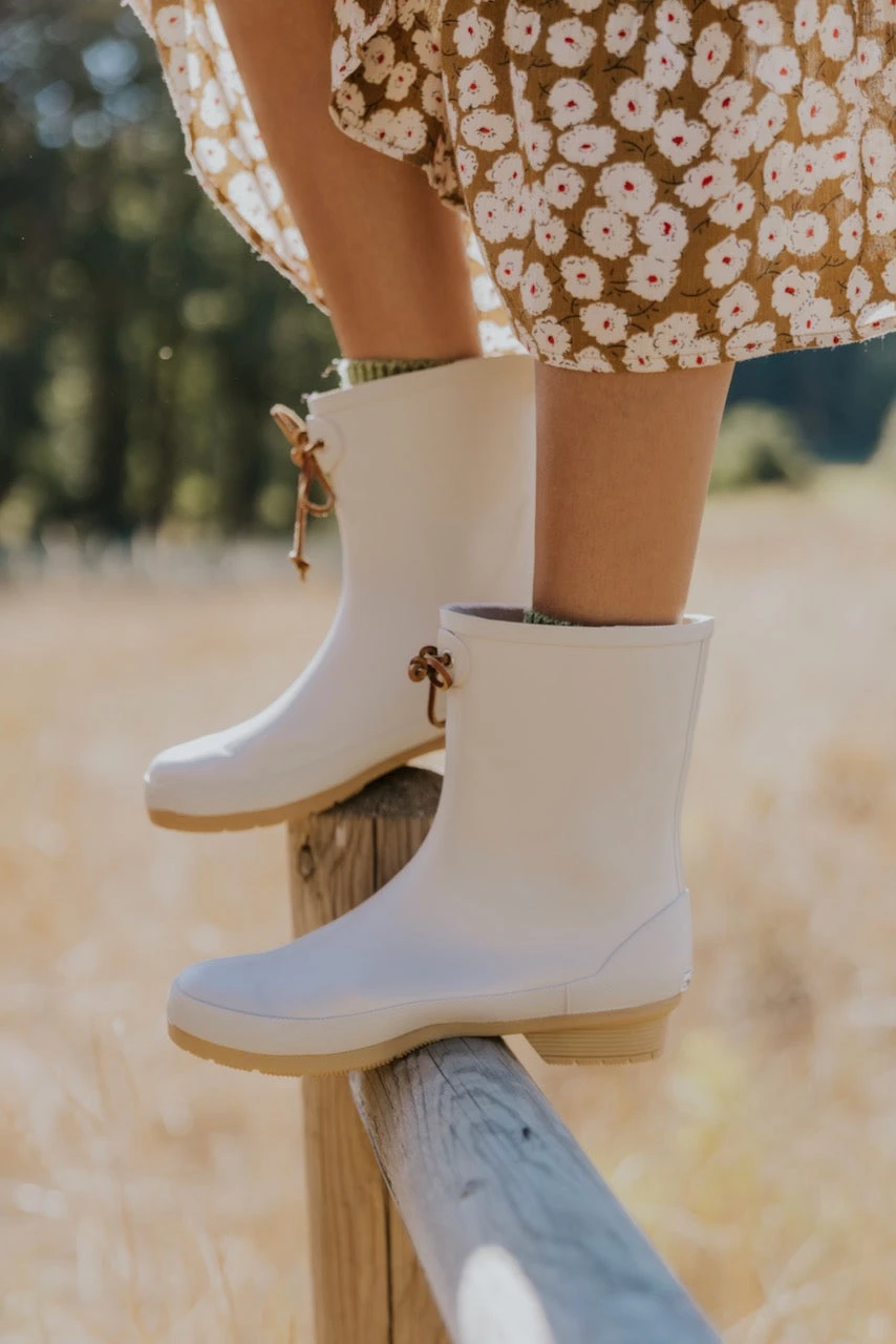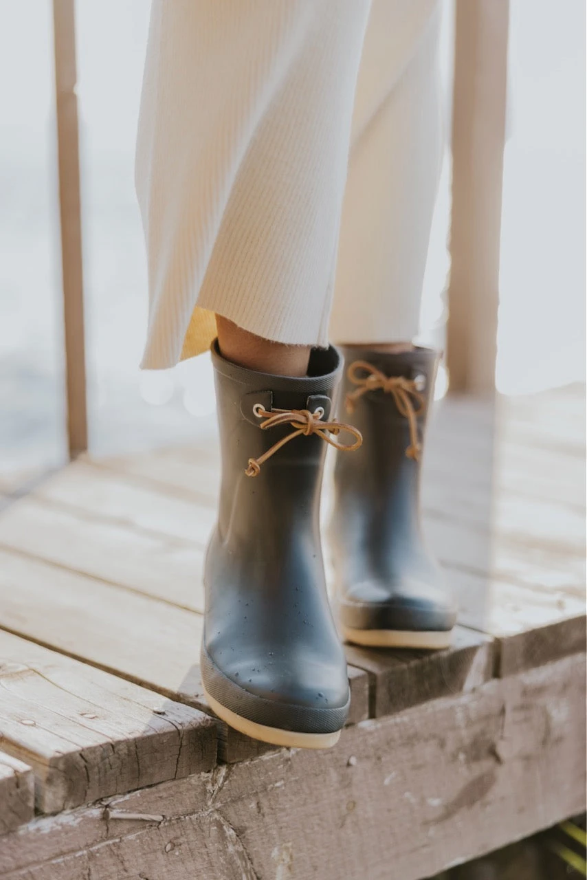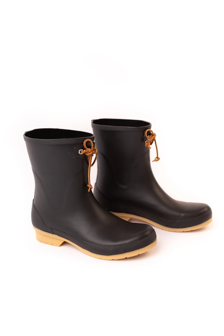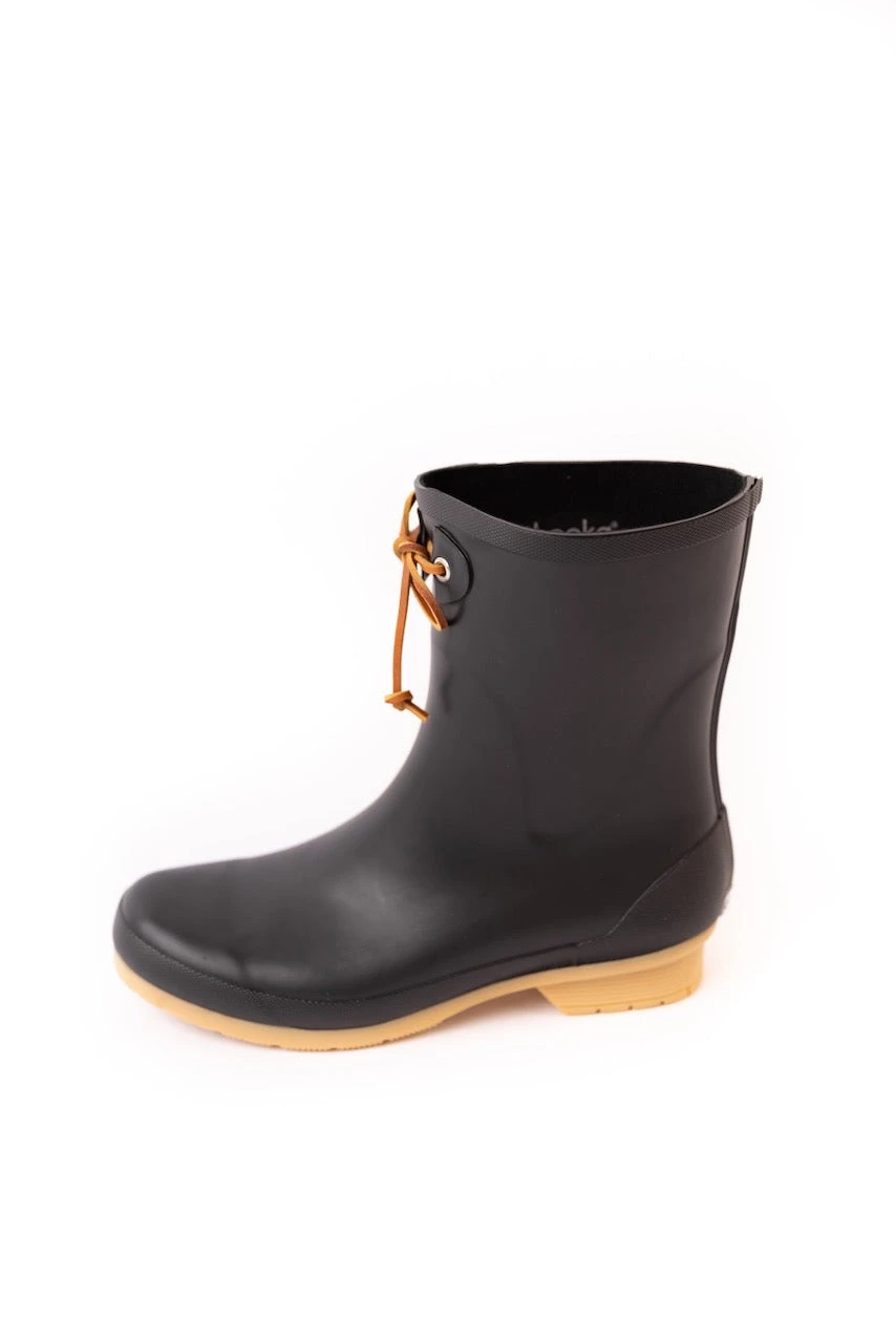 Whether you’re running errands or stopping for brunch with friends, the Chooka fits perfectly into your busy lifestyle. With design features such as waterproof rubber, faux lace-up detailing, and silver metal rivets, this almond toe boot is where minimalistic meets comfort. This classic boot pairs well with your favorite denim, leggings, or dare I say, dresses + tights.