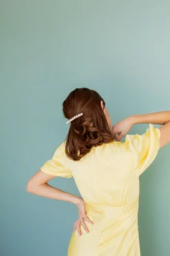 Barrettes are by far the easiest, cutest, and simplest way to style your hair. Andiโs Barrettes are curated specifically to hold your hair securely, and breathtakingly. This barrette is a gorgeous line of 8 medium-sized pearls on a French barrette. It will be your go-to accessory and always have your hair looking its best.ย