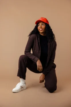 // paired with the elain classic waffle jacket, vacation club canvas trucker hat in navy, saddleback ranch foam truker hat, just like this long sleeve, + mia crew casual sneakers in burlywood and silver