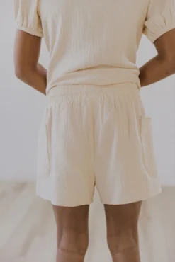 I know. Everything that we have released this kid’s launch has you going is this for real life? And I’m here to tell you. Yes, it is! Your little one will love wearing these shorts for so many reasons. A tie waist for a cozy fit, side pockets for treasures, and neutral color to match with their favorite tops. Whether that be graphic or solid tees or the matching blouse. These shorts will be in your little one’s rotation all summer long 🙂