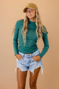 mediumseagreen // paired with the levi’s 501 high rise distressed shorts in steelblue + call it magic plaid shacket in steelblue