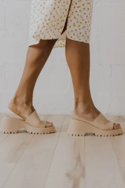 Slip into these + you’ll never think about slipping on any other slip ons. Whoa, that was a lot. Open toe style to let those dogs out + enjoy the sun as much as anyone else. Chunky silhouette because why we let that style die for a bit I’ll never know. Soft leather strap to care for those feet carrying an absolute legend. Treaded insole + wedge inspired heel to top it all off. You will unintentionally wear these daily with dresses, loungewear, + denim. A shoe you can depend on, that is well worth putting into your cart IMMEDIATELY.