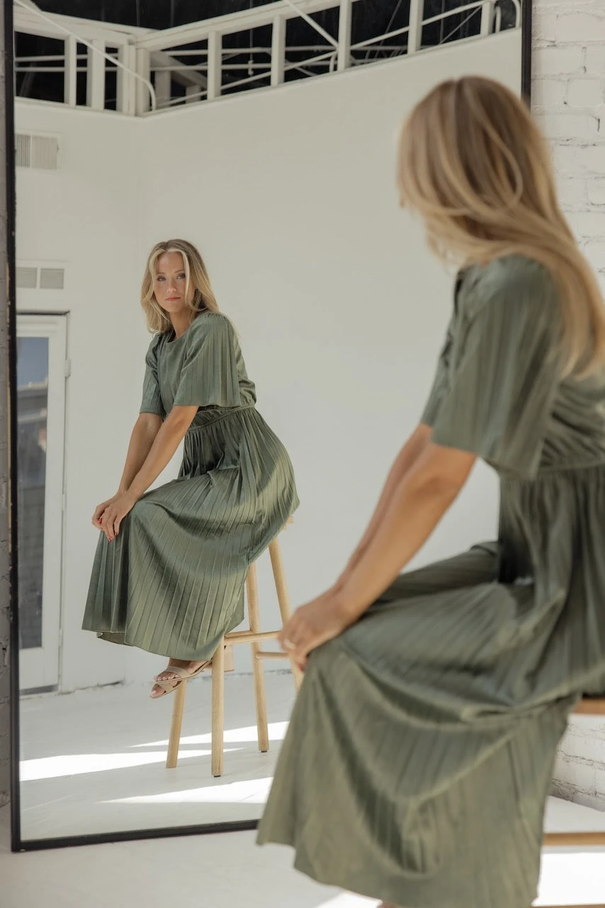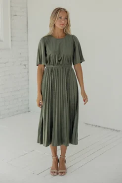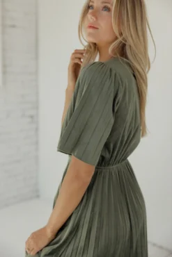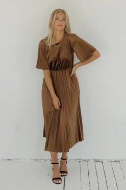 The Genevieve is a perfectly pleated dress that is simple yet stunning. Featuring thick velvet material, rounded neckline, and elastic waistline, you will be comfortable and chic this holiday season.