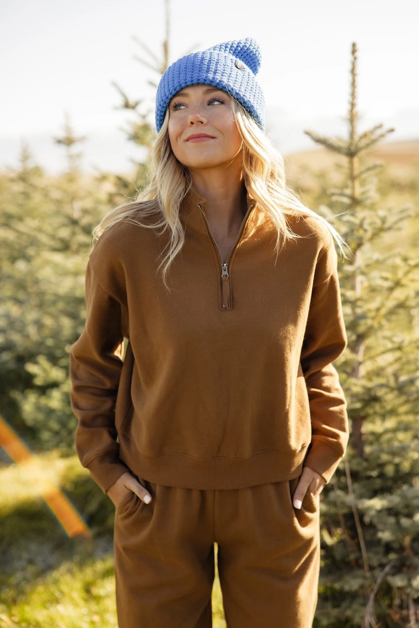 The coziest set is finally here! Coming in three perfect colors, you can pick your favorite or get them all and be cozy every day! I love a matching set and this one features a half zip top and jogger-style sweatpants.