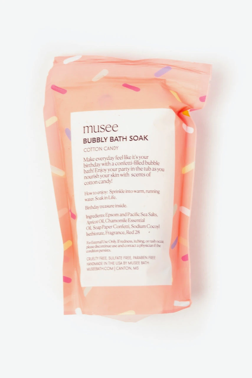 Make every day feel like it’s your birthday with this Cotton Candy Scented Bubbly Bath Soak! This soak makes a colorful bubble bath and comes with a surprise toy cupcake inside! Makes 3-4 baths.