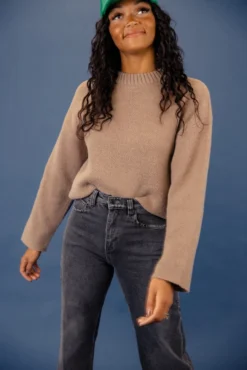 With wide sleeves, a drop shoulder, and a ribbed crew neckline, this sweater offers a cozy and easygoing fit. Its creamy hue adds versatility to your wardrobe, making it a go-to choice for chilly days. Stay snug and stylish in this roomy, thick-knit masterpiece.
