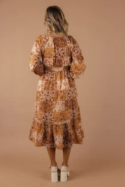 Embrace your inner boho goddess with this midi! Featuring a darling smocked bodice, poet sleeves, and playful patchwork detailing, this dress is a true standout piece. Perfect for any occasion, this dress is sure to turn heads wherever you go.
