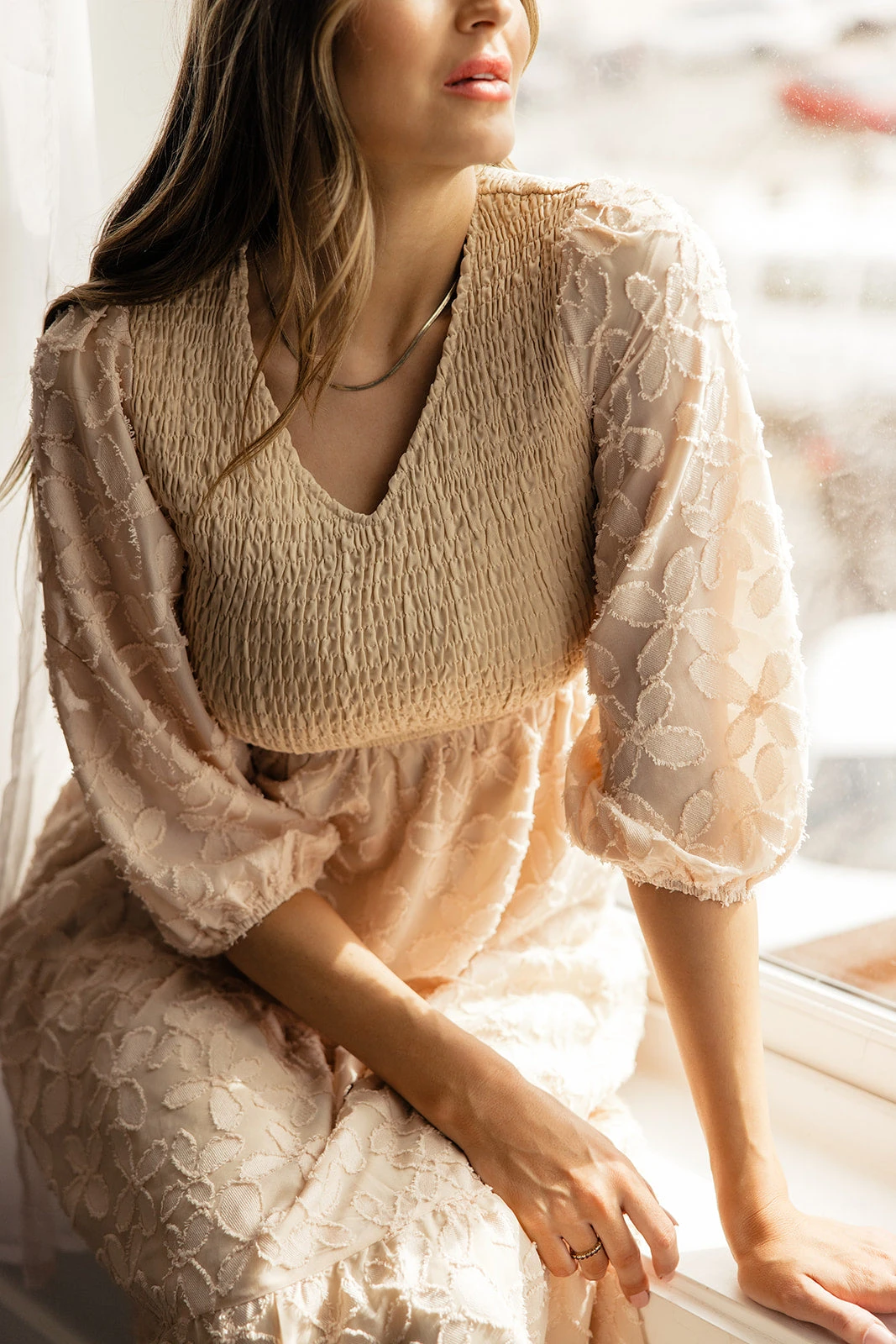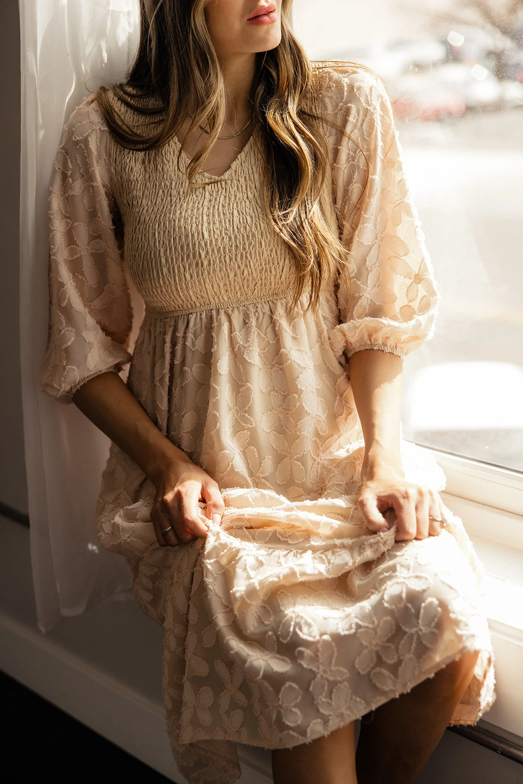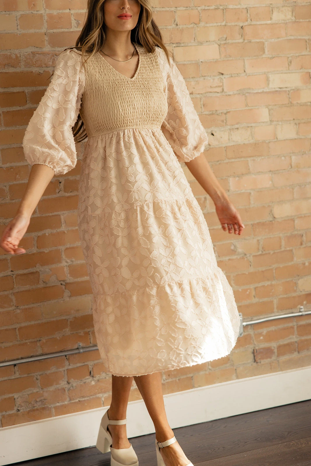 Featuring gorgeous floral appliqués, this dress makes every day a dance-worth day. The elastic poet sleeves and smocked bodice ensure a comfortable and flattering fit, while the v-neckline adds a touch of elegance. Perfect for a garden party or a day out, this dress is a must-have for adding a playful and feminine flair to your wardrobe!
