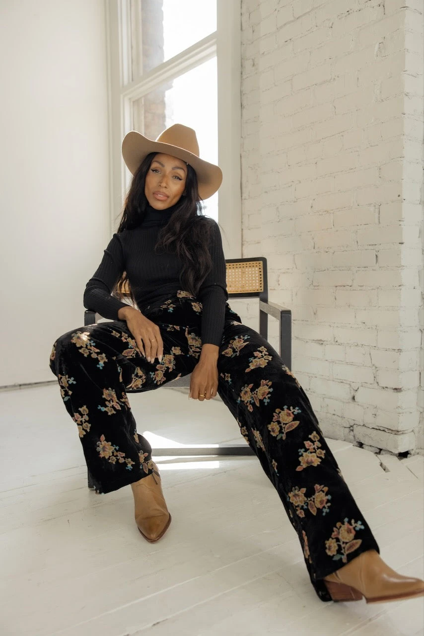 // paired with the crowd of thousands floral pants + free people new frontier western boots in sienna