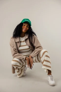 We are all about style here at ROOLEE and this set is one we love. This knit top is so cute with the matching pants and a jacket but it’s also the perfect transition piece all year round.