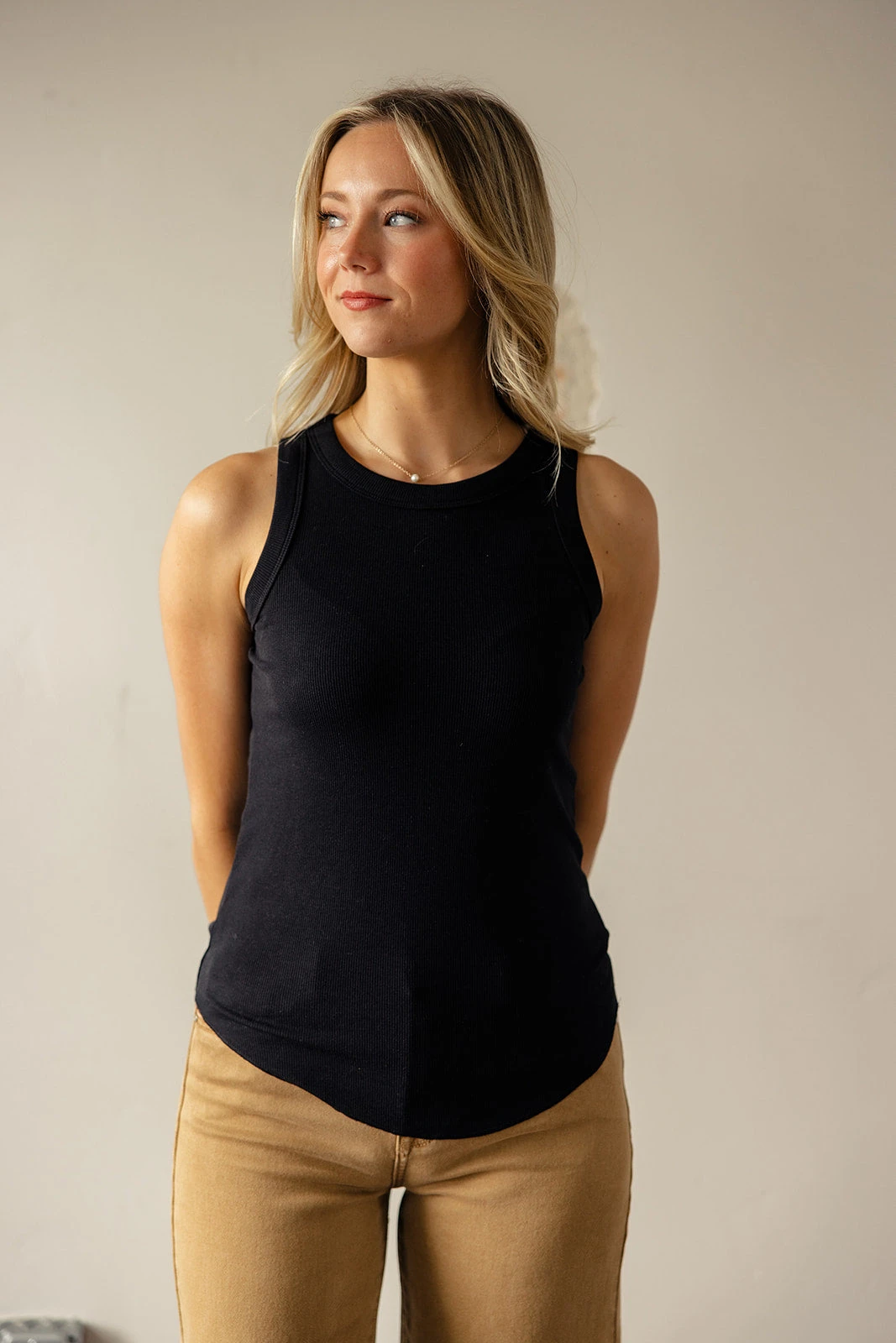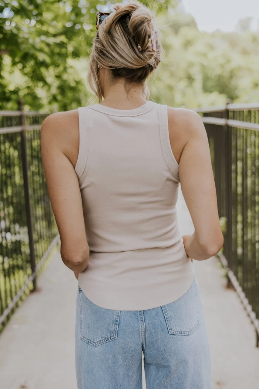 Simple staple pieces make the world go around. Those pieces we can wear with anything, anytime. I personally would wear tank tops like these nonstop with denim, skirts, shorts, + over dresses. An absolute game-changer. Ribbed. So soft. High neck. Racerback design. Get it in every color + I promise you won’t regret it!