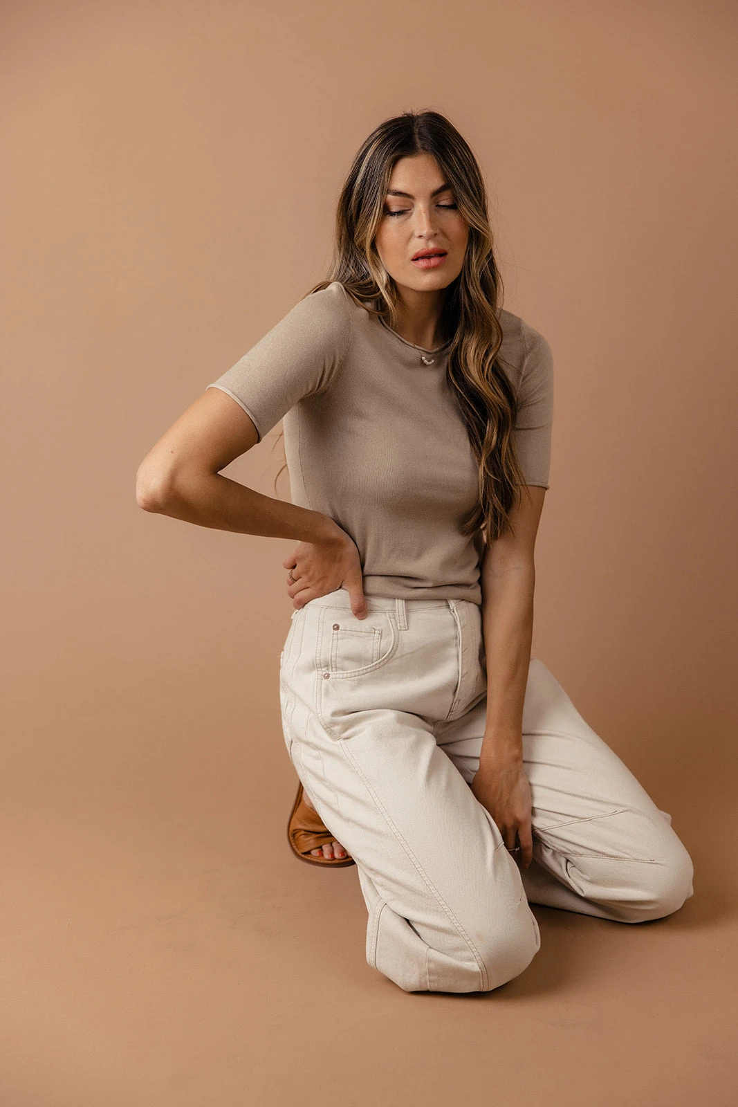 // paired with the free people good luck mid rise barrel jeans in ivory