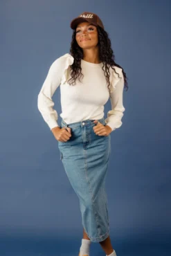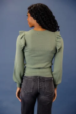 The Meant to Be Ruffle Sweater features ribbed knit material, balloon sleeves, and 3 gorgeous colors. Easily pair with anything in your closet and effortlessly have an outfit. All you have to do is decide what color you want – I want them all!