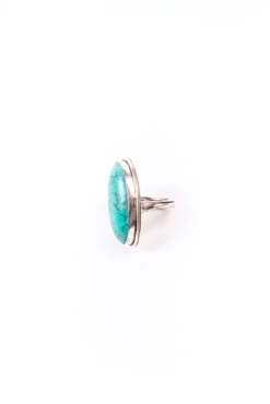 Let’s add something blue to your jewelry! This Mediterranean Oval Ring features a turquoise stone on a silver band. Wear this to make a statement with that something blue!