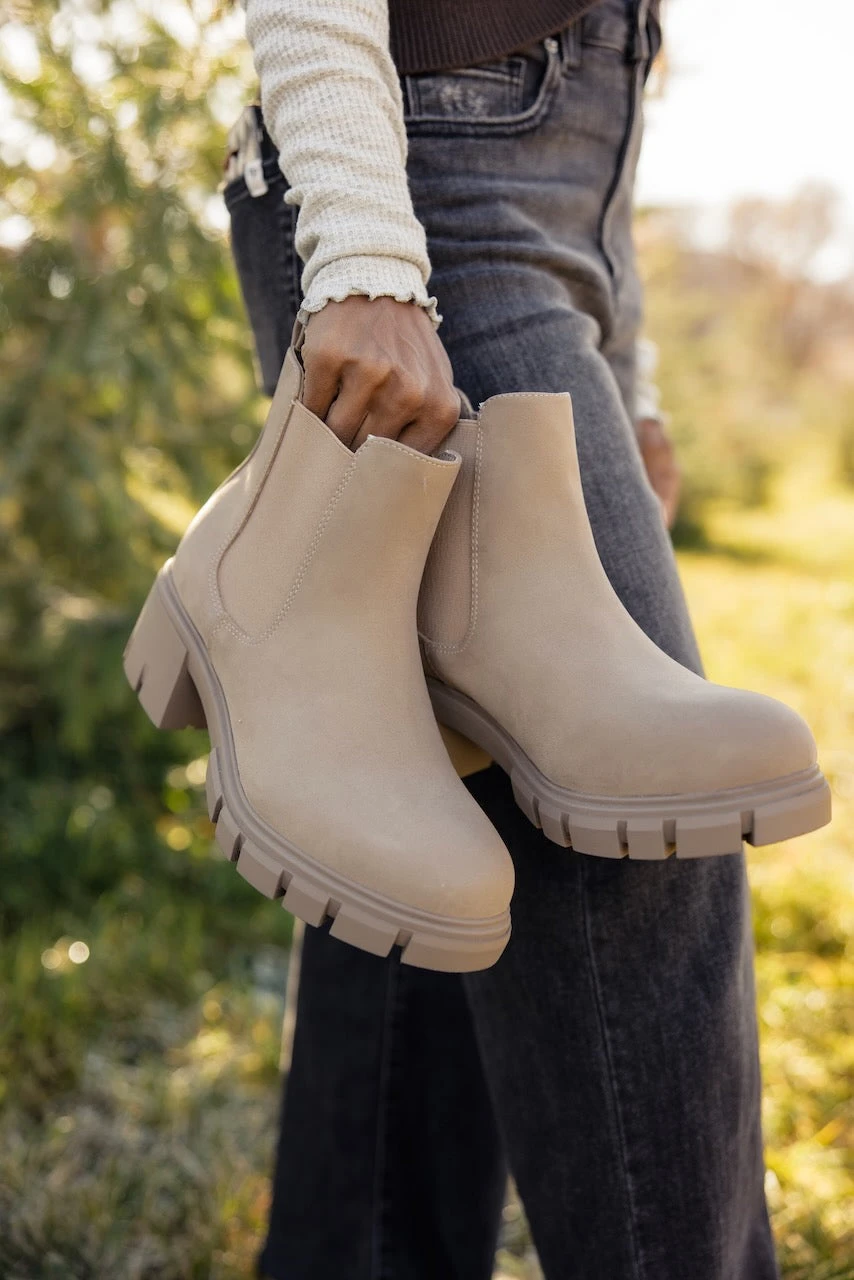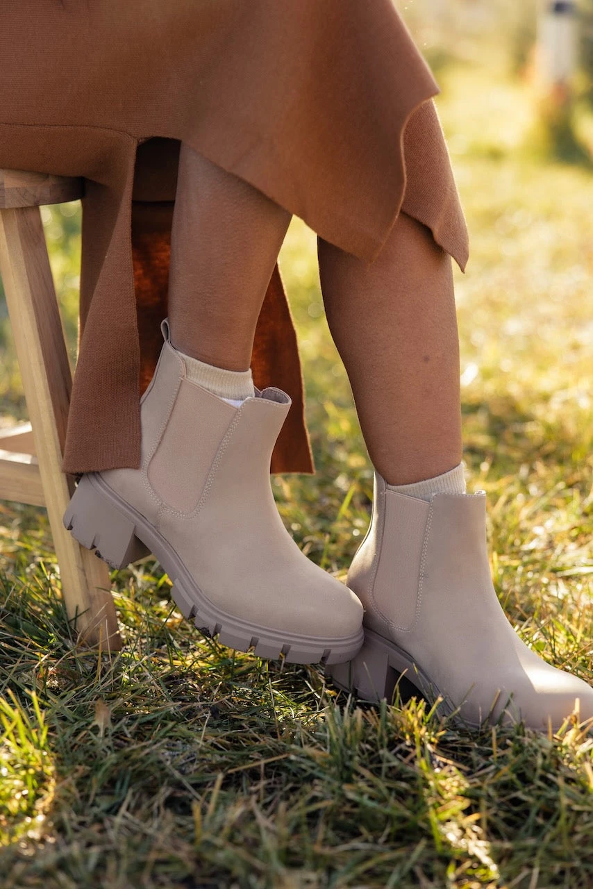 The Walk and Talk features a lug sole and 2″ heel for a simple and casual fall bootie. Easily pair with jeans, skirts, and dresses. These stone-colored boots will be your new fall staple!