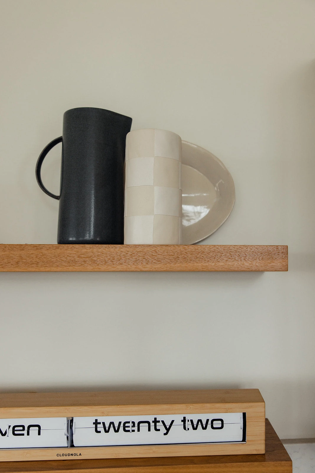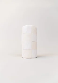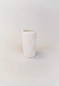 The Mila Checkerboard Vase is perfect for displaying a vibrant bouquet of flowers or styling as a stand-alone piece. With its charming checkered pattern, this stoneware vase adds a touch of cuteness to any space.