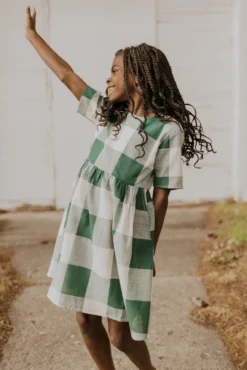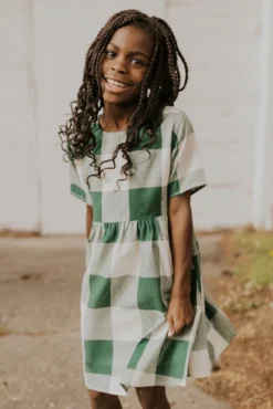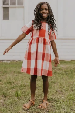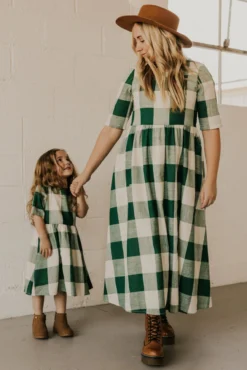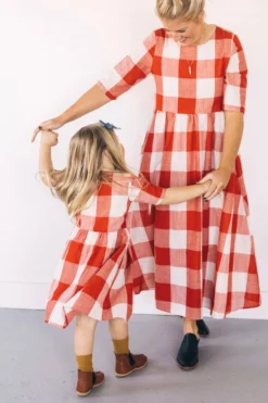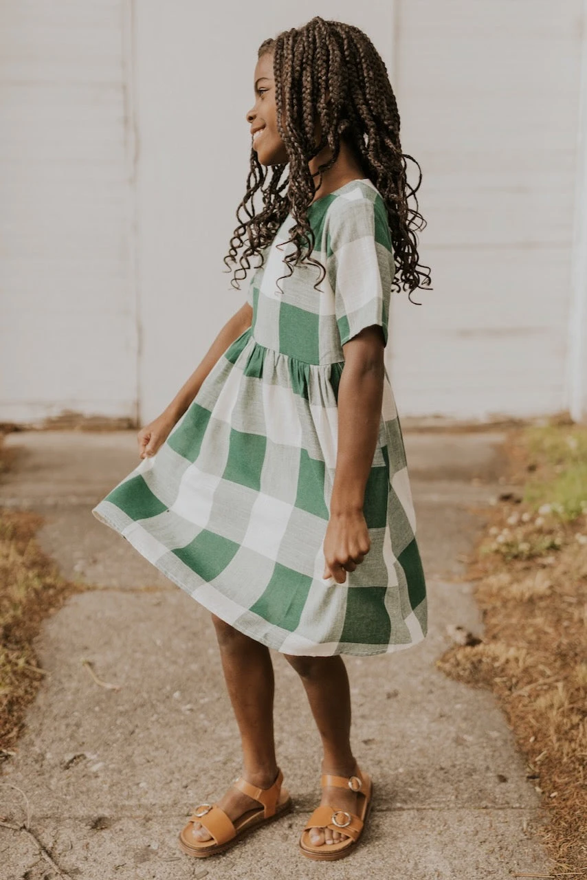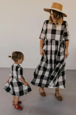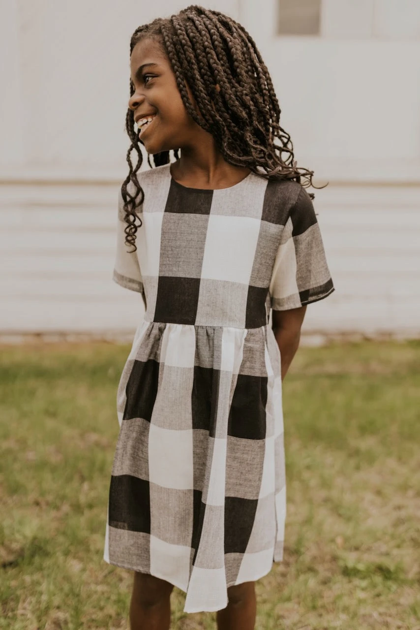 Now you and your mini can match in this ROOLEE classic! This dress features a timeless buffalo plaid that is bold, sophisticated and the perfect style for every occasion. Breathable, woven material is paired with hip pockets, half sleeves, a full lining, a gathered waist, and a flowing skirt. The Mini Maddie Buffalo Plaid Dress is adorable, versatile, and sure to be your daughter’s favorite dress!