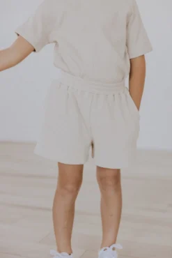 These cute shorts are perfect for summer day! Featuring ribbed material and an elastic waist, the Mini Peggy Shorts are great to pair with the matching tee or mix it up and throw a pattern on top! You can’t go wrong with these!