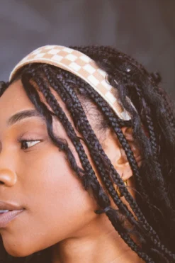 - An adorable checkerboard headband in the CUTEST neutral colors