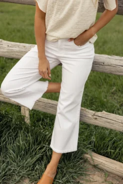 A classic pair of white jeans are just what you need! With wide leg, high rise, and raw hem, the Peter Pants are a perfect summer staple. Don’t know how to wear them? A simple tank or graphic tee are always my go-tos but you can’t go wrong with a neutral blouse or add a pop of color with a floral top.