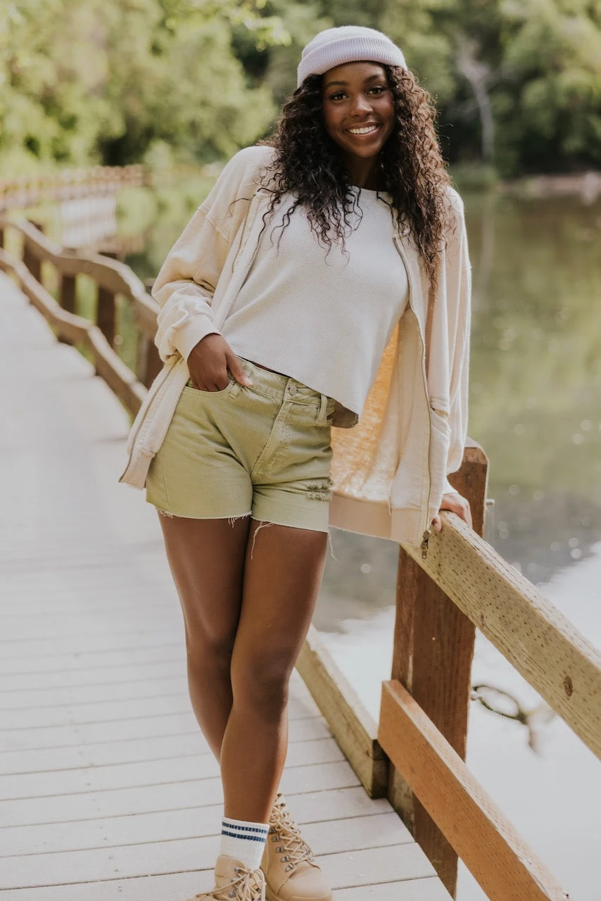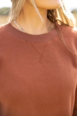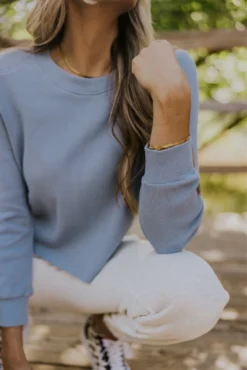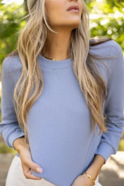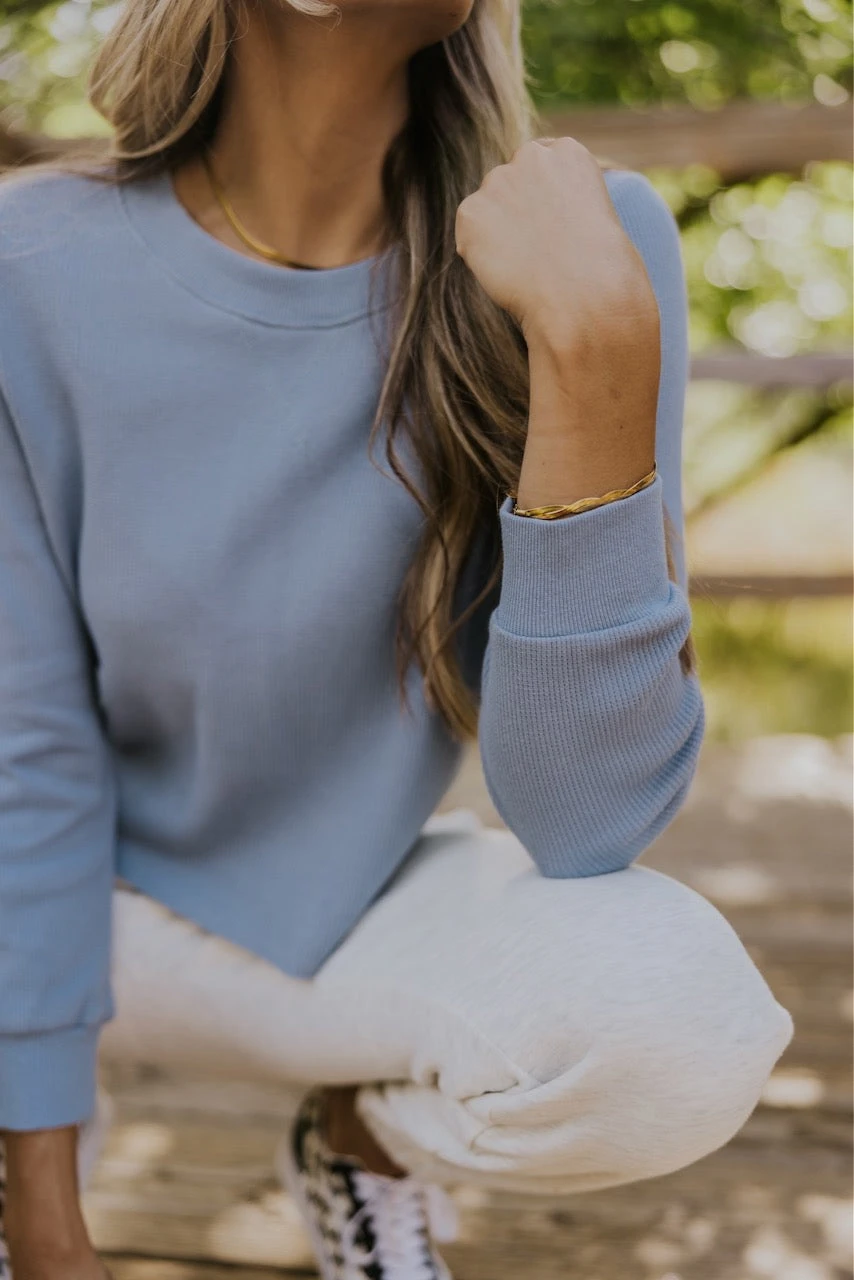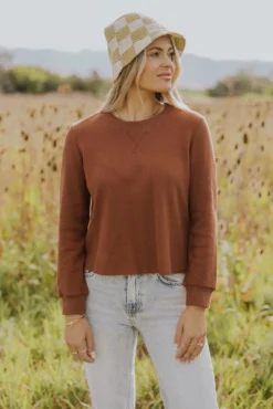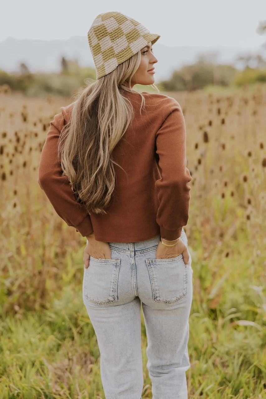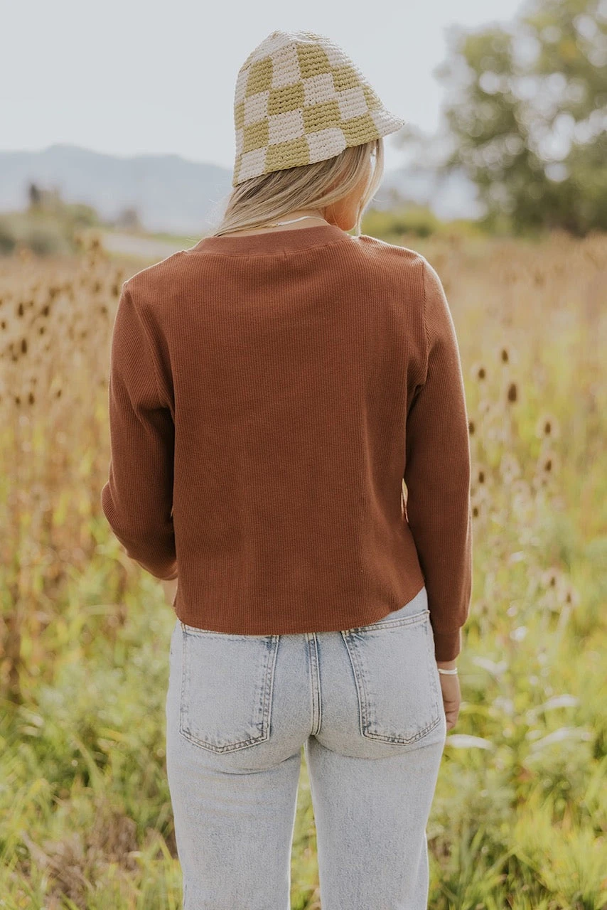 The perfect little waffle knit long-sleeve top that our Fall wardrobes are BEGGING for. Waffle knit. Long sleeve. Crew neck. Cropped length. Pairs so good with denim, comfy pants, and layered under jackets. She’s also perfect for your Fall adventures to the mountains or late nights by the water.