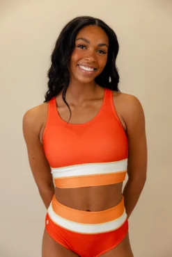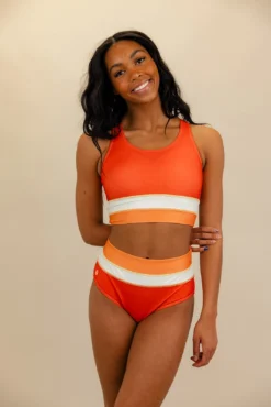 It’s the swim crop you know and love, back to steal your heart in the cutest red color. Featuring a scoop neck, wide double band, and back zipper detail, this top offers high support and coverage, keeping you comfortable and secure wether you’re surfing or sun-bathing. Pair with the matching bottoms!