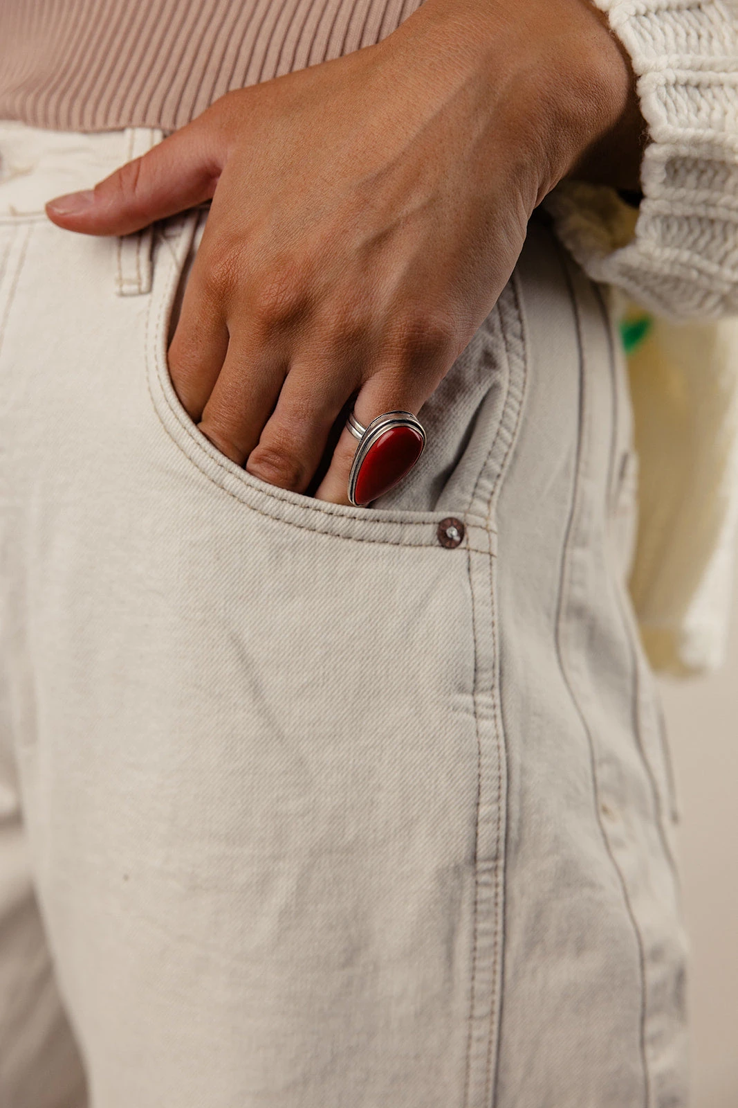 Iām a sucker for giant statement rings so the Miranda Ring is already in my cart. A silver band. Bright red stone. Teardrop shape. The perfect ring for when you need a pop of color or need to make a statement!