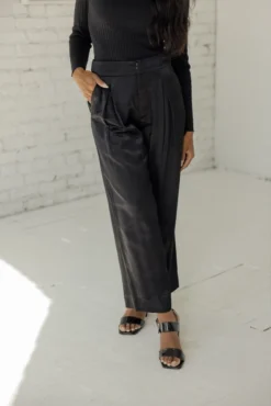 Add a touch of refinement to your wardrobe. Make a statement in these wide-leg pants that are made with a polished silky material that billows and moves with every step. These impeccably tailored trousers come in a nonchalant cut with pleats that fall beautifully. Balance the shimmer and sophistication of these essential trousers with a tucked-in blouse or simple shirt.
