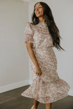 Alert the authorities. This skirt and blouse set has to be illegal. The Cressida Skirt was designed with an a-line silhouette accented with a dainty floral pattern that was made for women of any age. With a matching blouse, you can wear the two pieces together and dress to impress or adorn the skirt with a top of your choice for a unique look.
