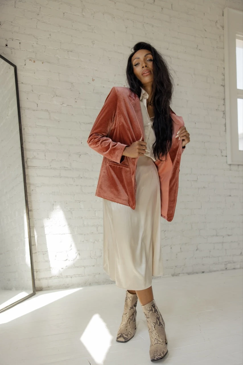 // paired with the salt gable estates button up blouse, salt westgate velvet suit jacket, + free people sienna ankle boots in dimgray