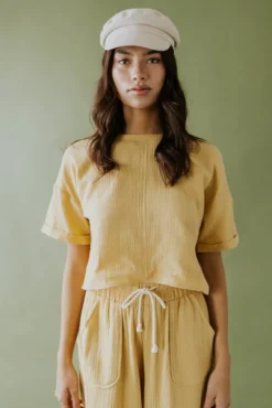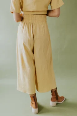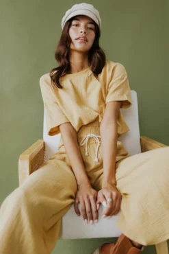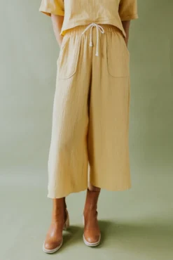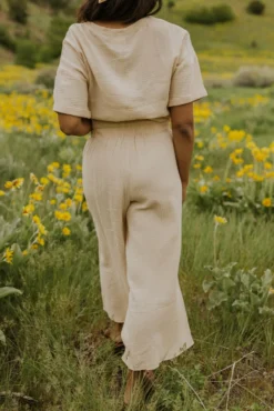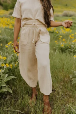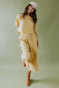 The Linen Broadway Park Set paves the path to being a distinguished fashionista in the world of fast fashion. In an affable color and opulent fabric, a simplistic box cut top effortlessly pairs with its matching wide-leg cropped pants. The pants are designed with a thick elastic waistband that’s adorned with a functional rope drawstring. Style this set casually with white sneakers, or dress it up with your best pair of heels.