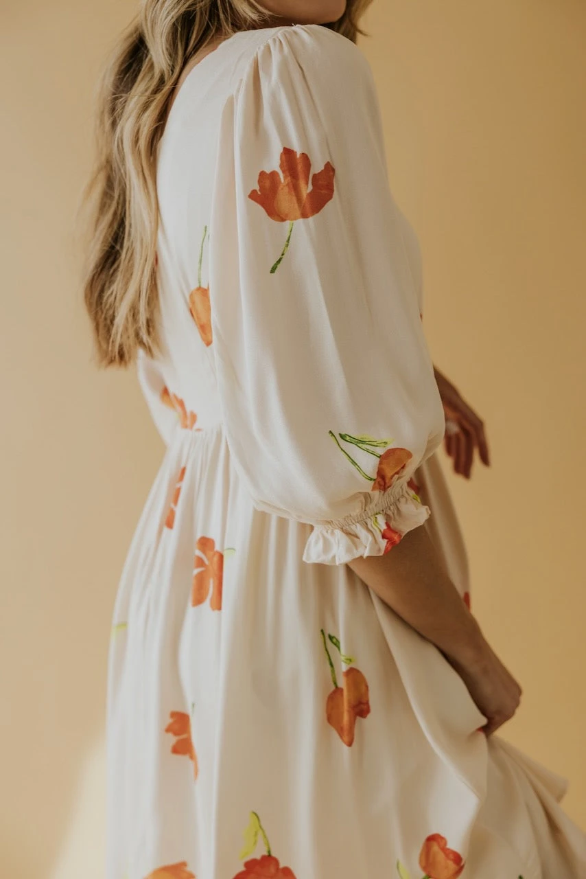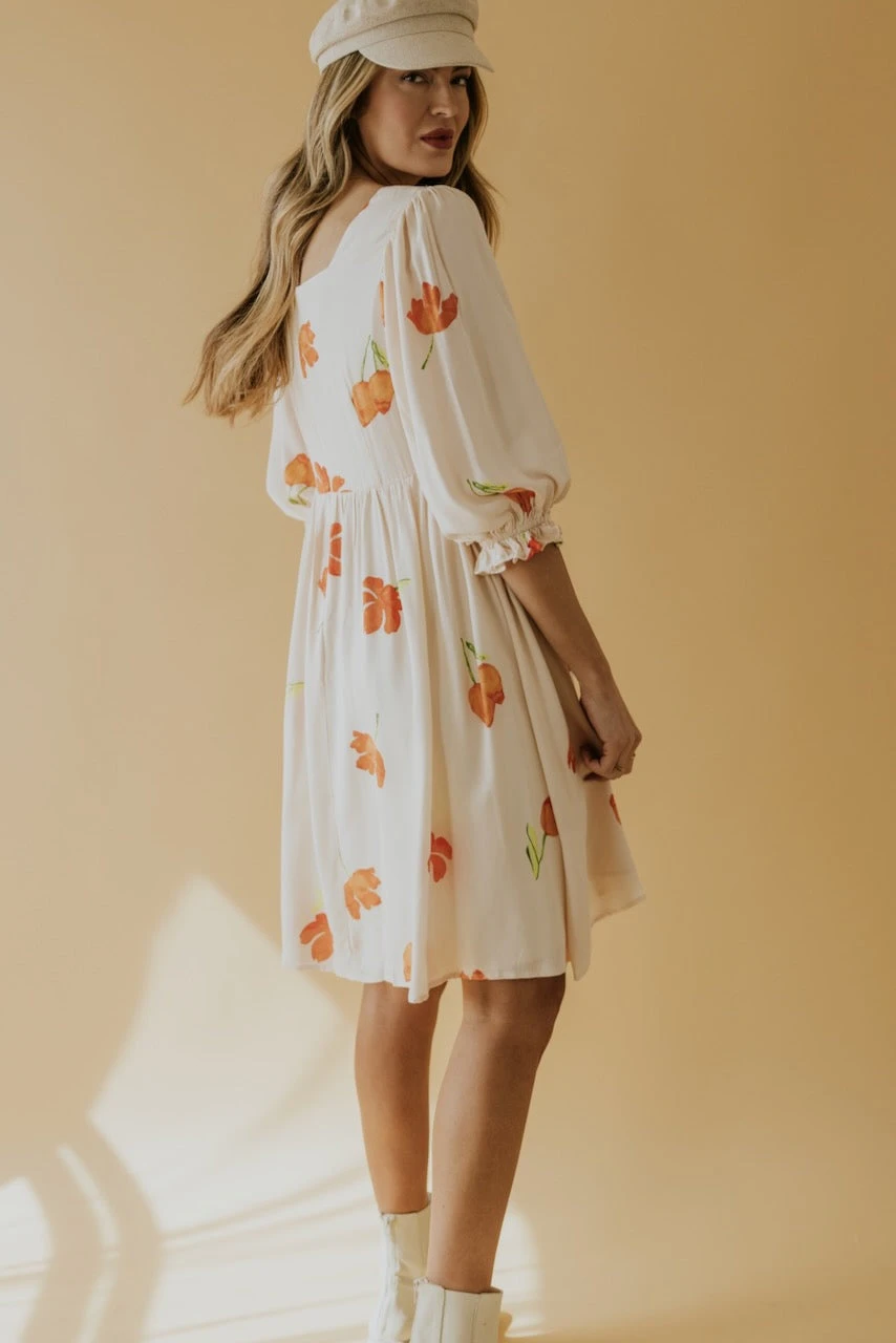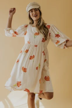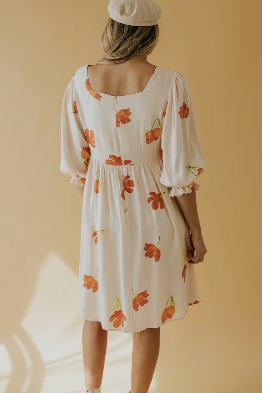 Square necked and joyously fabulous. Simple watercolor flowers in vibrant hues create a spring dress worth twirling about. A babydoll silhouette with poet sleeves, she has all the characteristics for a winning ensemble to any occasion. Family photos, spring weddings, and everything in between.
