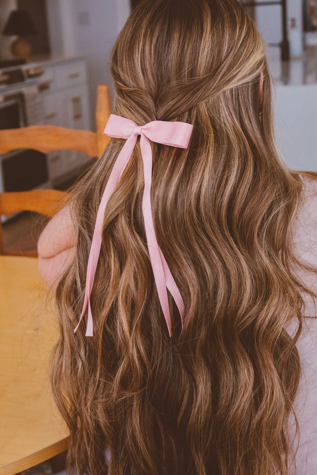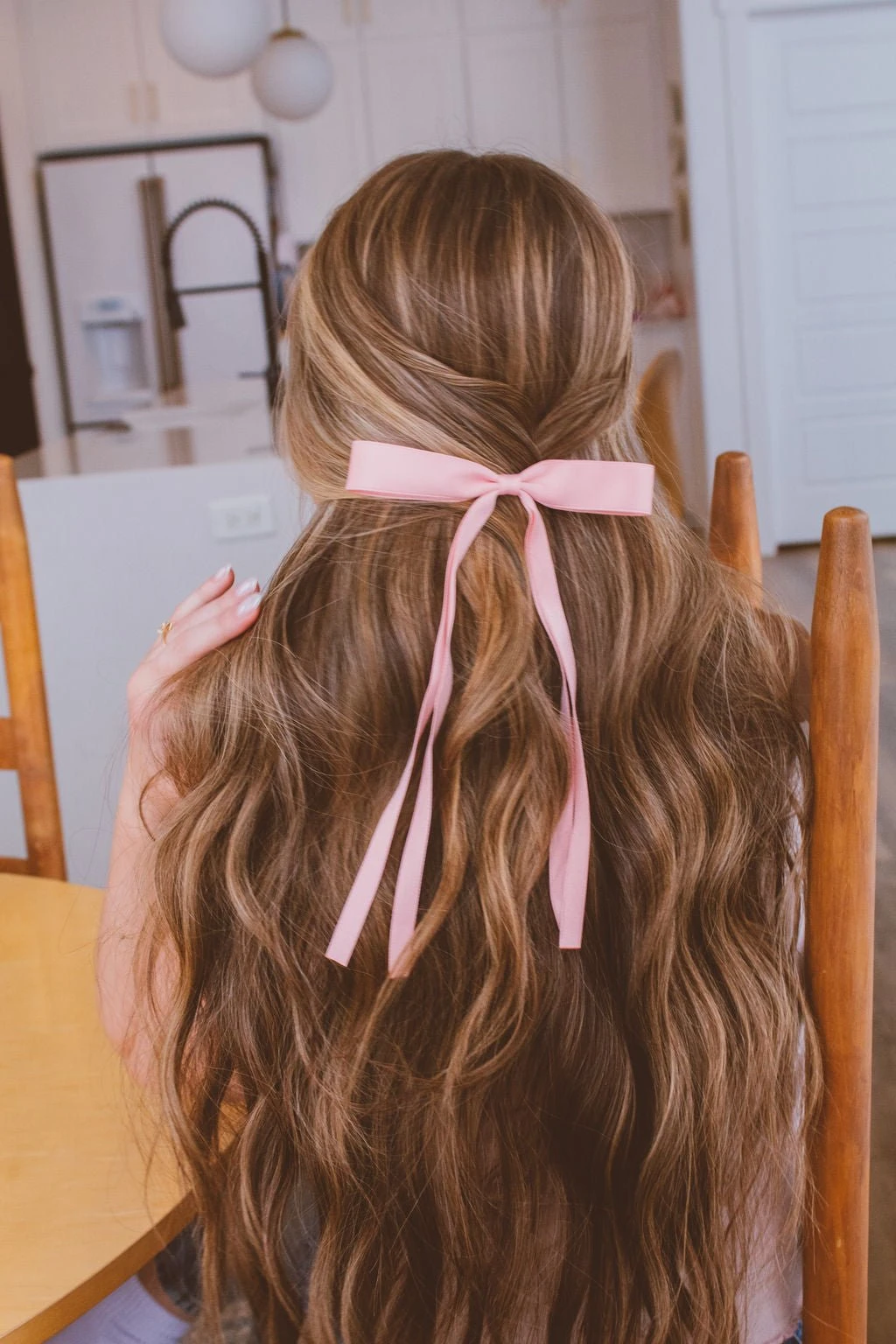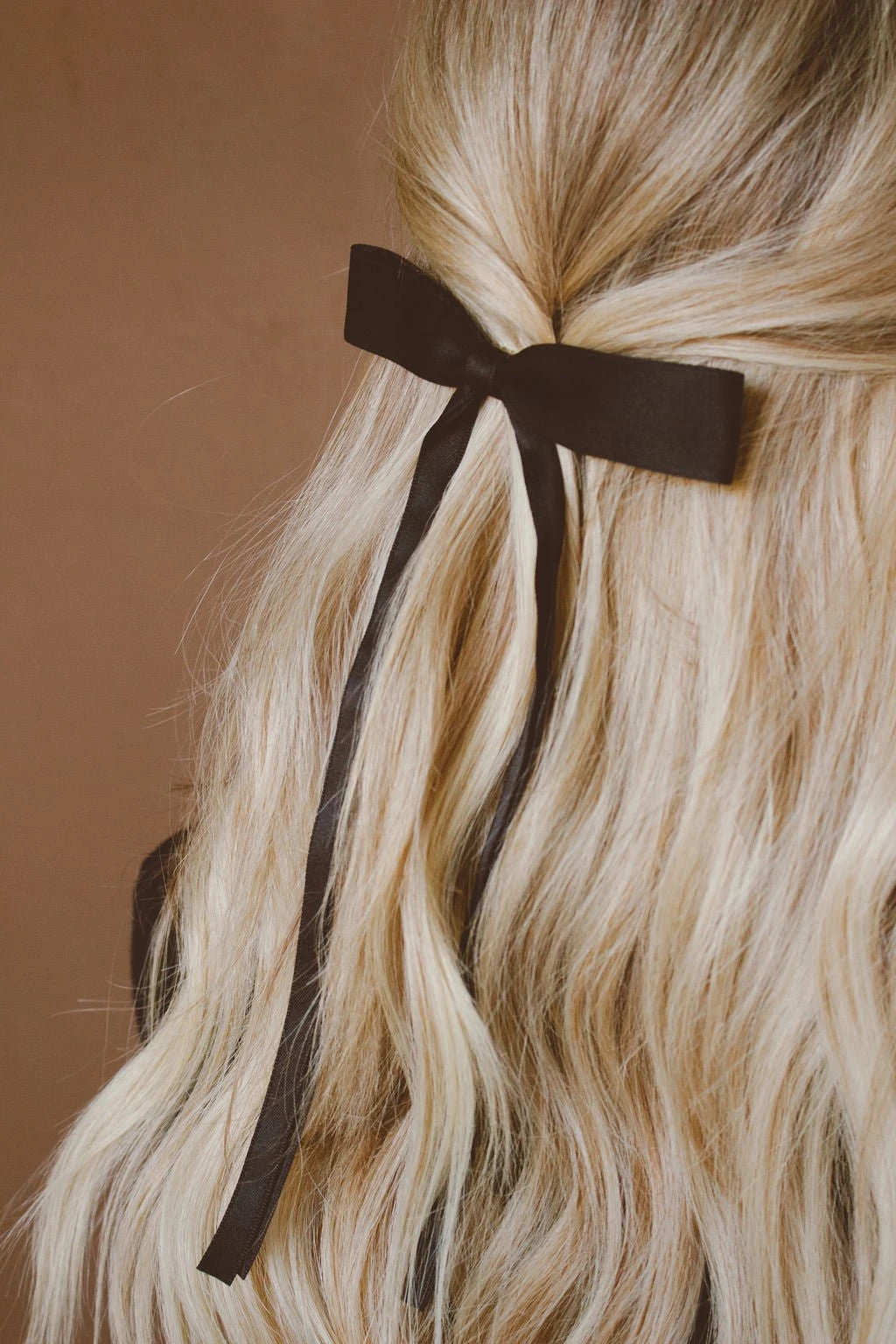This satin ribbon bow comes in three stunning colors, and has an extra long tail that hangs beautifully with your hair. The alligator clip style makes for an easy application and a strong non-slip hold during wear.