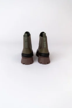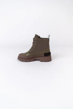 These boots are designed with a robust lug sole and military-inspired lace-up closure for a rugged yet fashionable look. The protected toe and chunky construction ensure lasting durability and protection. Additionally, the back pull tab offers easy on-and-off functionality. Elevate your footwear game with these boots, ready to conquer any terrain in style.