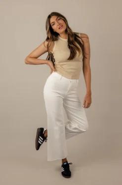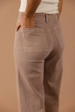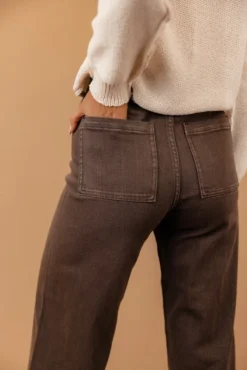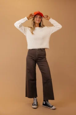 These high-rise wide-leg jeans feature the most beautiful colors. Pair with sweaters, tees, and wear these all year long through every season. Featuring back patch pockets and a raw edge, they have a little bit of everything.