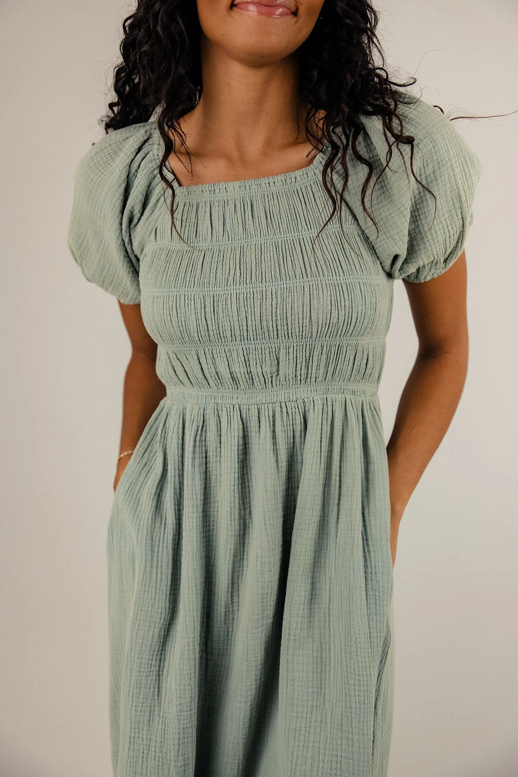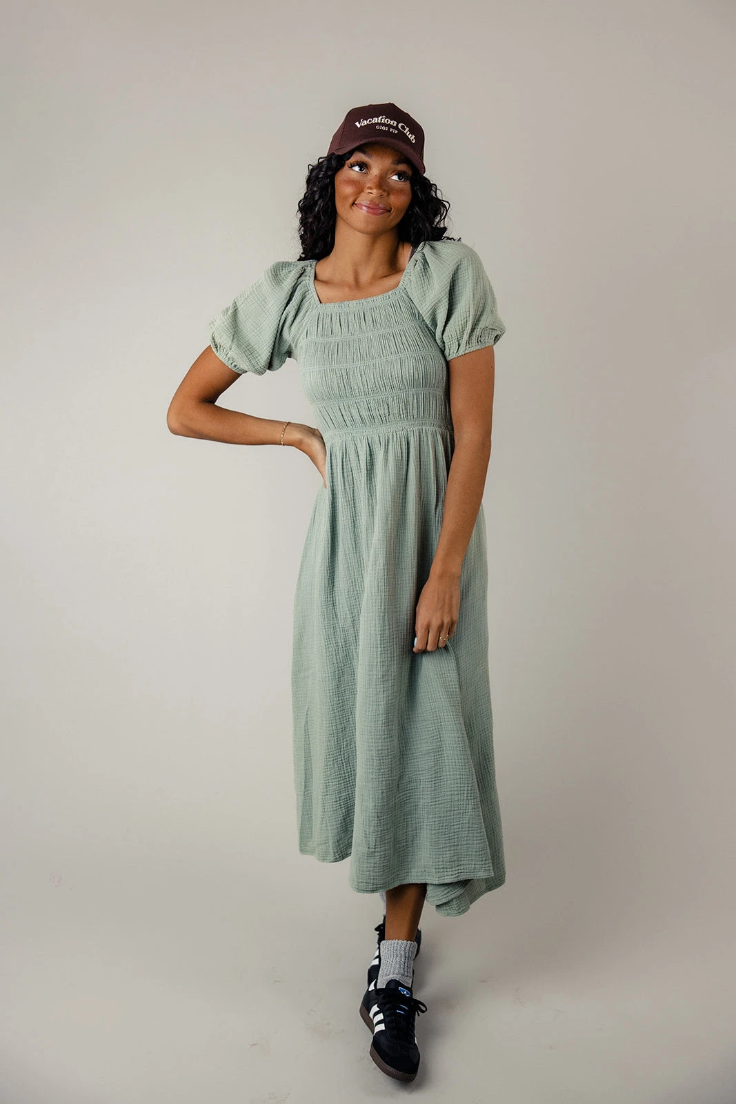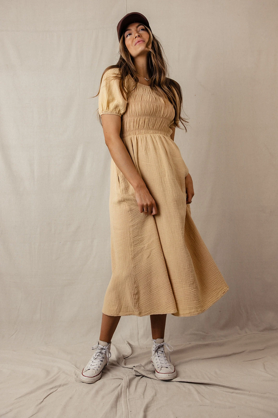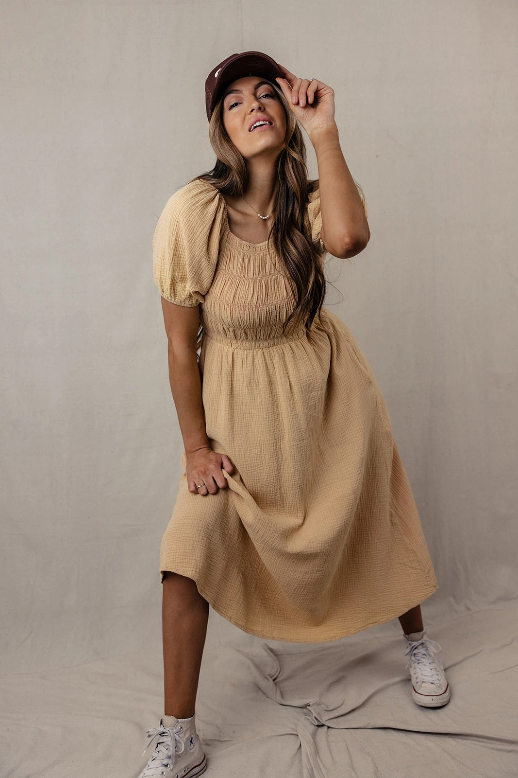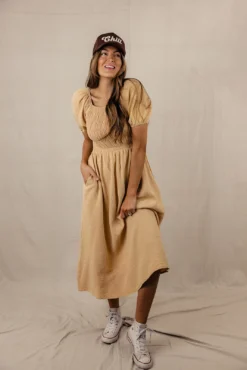 The Stars and Butterflies Smocked Midi features a smocked bodice, puff sleeves, and mineral-washed fabric. This gorgeous dress is fit for all occasions! Wear on a night out with your special someone or with sneakers and a denim jacket for a dressed down look.